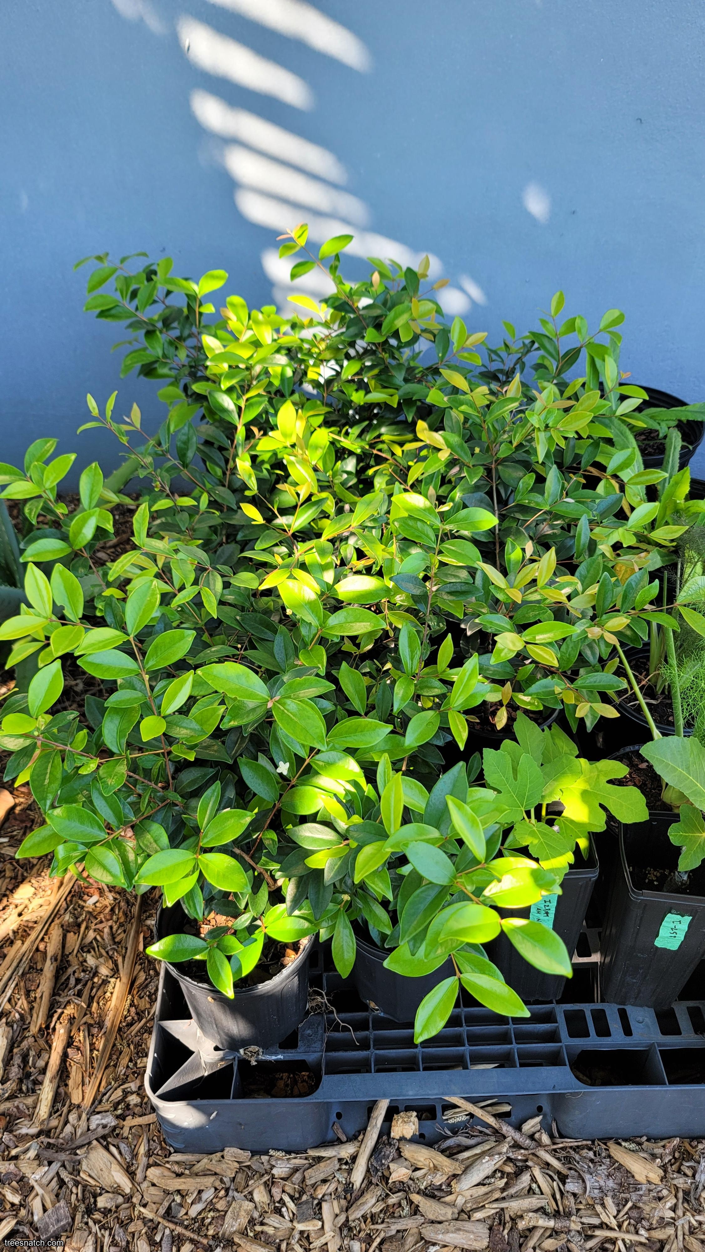 These plants are growing in 1-gallon containers and are well-established, many putting out flowers even at this stage of growth. Cedar Bay Cherry is known to fruit at a relatively young size and can even produce while still compact, making it a rewarding addition for collectors and home growers.
